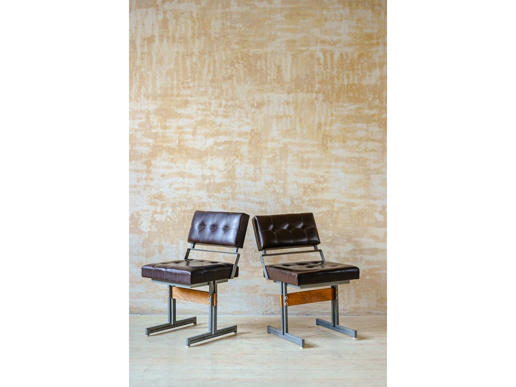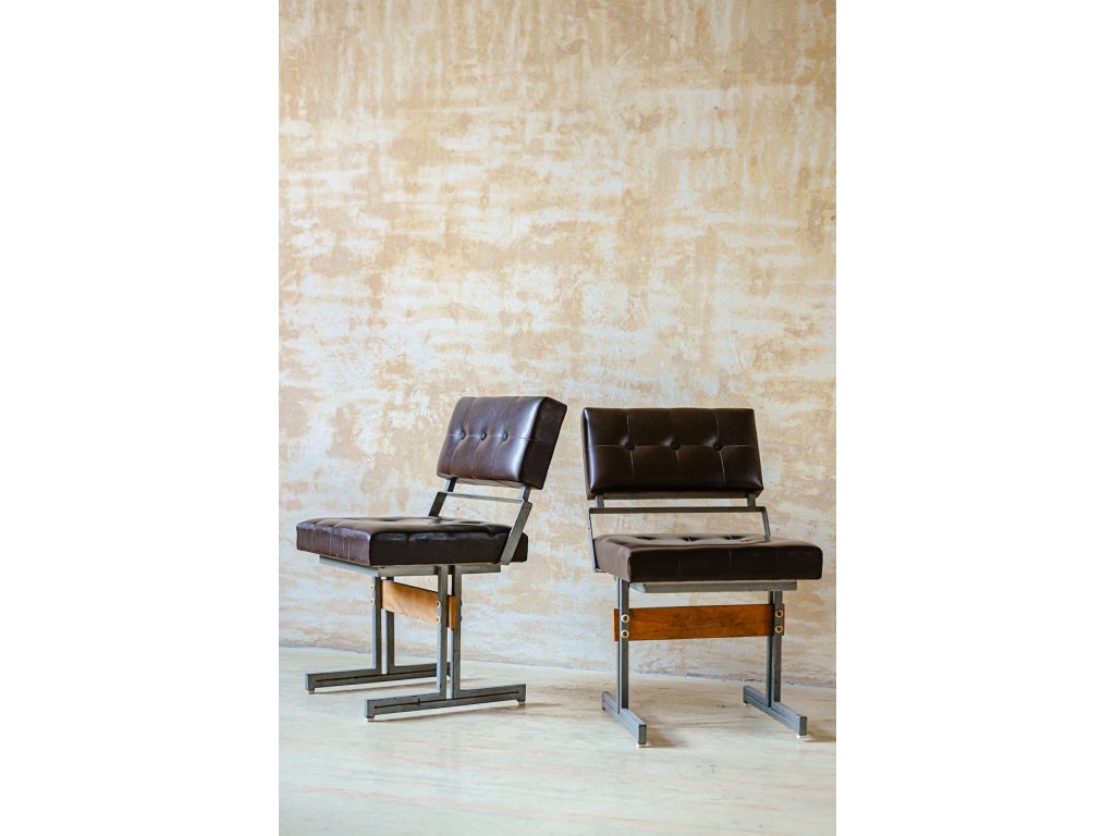 Barva: Tmavě hnědá koženka, nožky v tmavě šedém laku, dřevo teak.